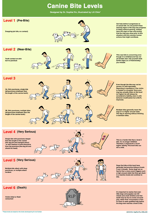 • Dogs with a bite history exceeding Level 4 are not accepted for training services
